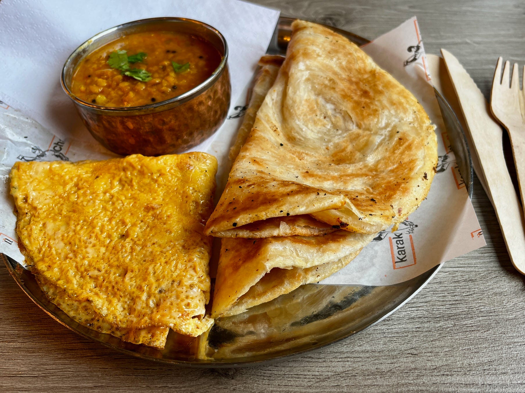 And finally, in Leyton Midland, Indian streetfood kitchen Karak Chaai (original review here) offers easygoing twists on your mid-morning meal: I enjoy its Desi Breakfast, pictured above, just £7.75, which comprises a small pot of comforting mild-spiced dahl, a springy masala omelette and — best of all — two buttery, flaky warm paratha. You can also order a coffee or strong spicy karak chaii to wash it down (included in the price).